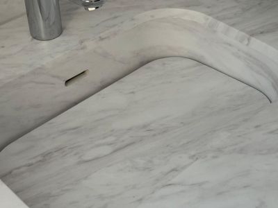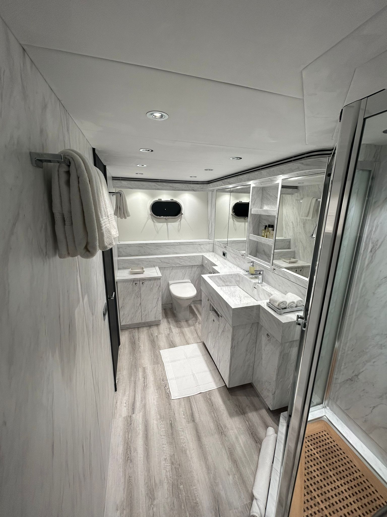 ▸ Interieur Korpus / Sichtflächen DI-NOC FW 1757 karbonisierte Eiche / DI-NOC ST 1831 Marmor Stone ◂